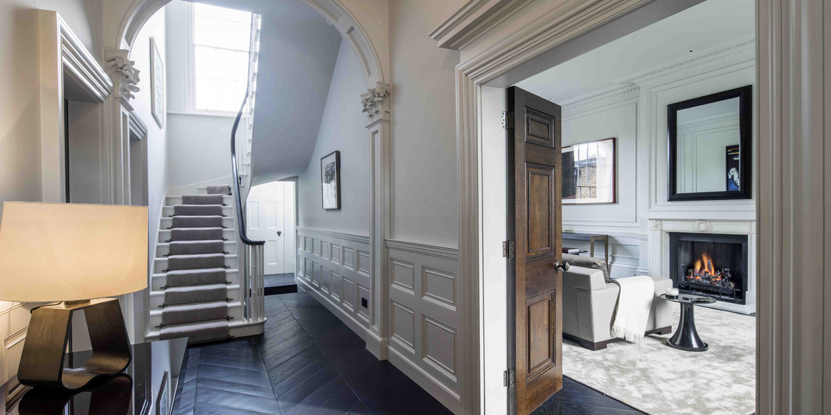 Originate restored this 4,500 square foot Grade II-listed villa in the St John’s Wood Conservation Area of London. We worked with the Heritage Planners to create a sensitive renovation and reinstate the historic interior detailing, whilst updating the house for contemporary living. We needed to install air-conditioning and whole-house ventilation, along with modern kitchens and bathrooms, whilst respecting the historic fabric.