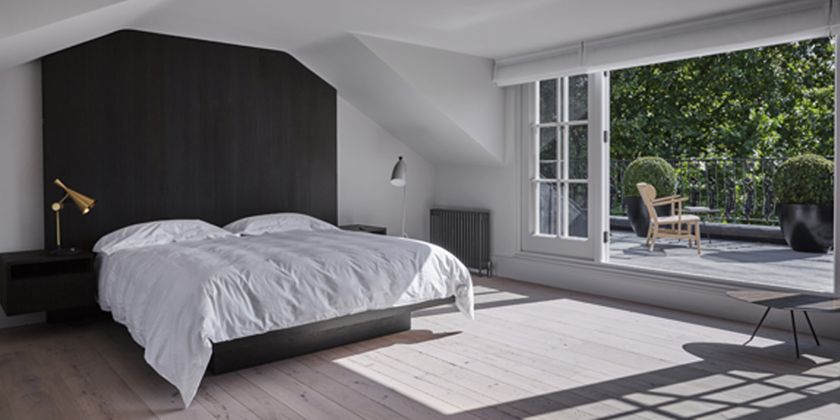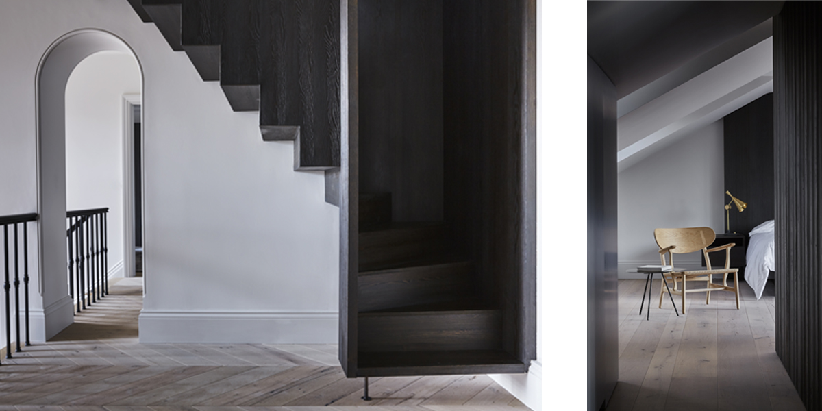 Originate created a modern refurbishment of this historic residence in London’s Little Venice area. The residence had almost completely lost it historic architectural details, so our design focussed on the reinstatement of the plasterwork, panelled doors, fireplaces, timber floors and the cantilevered stone staircase. We designed new timber joinery that was deliberately modern in order to contrast with the historic context. We wanted to create a clear reading between the building’s history, and its current modern use.