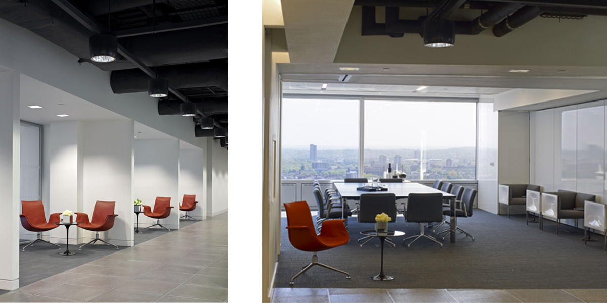 Originate designed the top floor of this confidential media client’s headquarters to function as a flexible space for meetings, training, presentation and entertainment. The client specified maximum flexibility as a key driver for the design brief. We designed the floor to be re-configured in a variety of settings. We specified solid and glazed sliding, folding partitions and flexible audio-visual capabilities. Originate designed the area for typical cellular meeting room settings, right up to large televised presentations. We also designed the area to open up into large entertainment and ‘town hall’ areas for over 400 people.